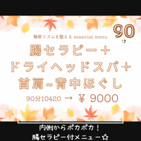 こんにちは! セラピスト岡田です☆彡 当店の『腸セラピー』は、おへそを中心に腹部を心地よいリズムと力加減で刺激し凝り固まった筋肉も緩め、腸内環境の改善を促します 優しくお腹に触れて腸の動きを促すマッサージはお腹のガスや …